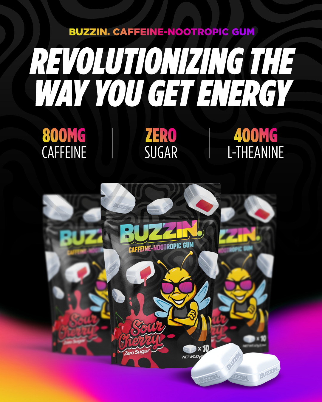 Whether you’re studying, working, or training, Buzzin Gum keeps you alert, focused, and energized — with a long-lasting chew experience you’ll love.