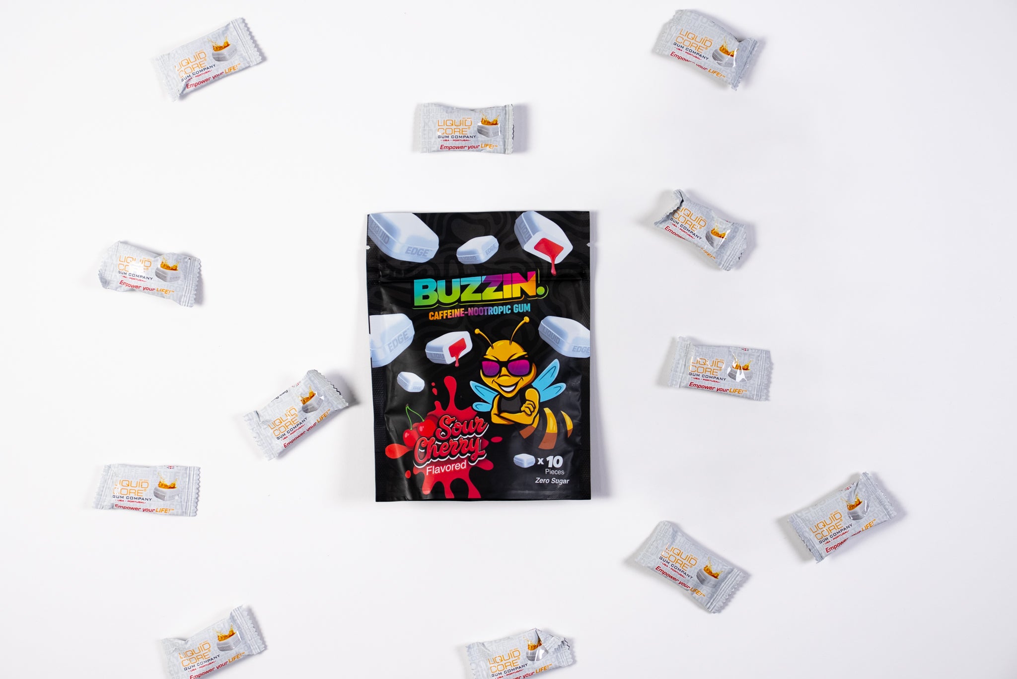 Our liquid-core design gives a burst of juicy sour cherry flavor that lasts up to an hour, while the active ingredients absorb fast for a sustained boost. Each pouch comes with 10 individually flow-wrapped luxury pieces in a resealable bag, making it convenient for daily use or on-the-go energy.